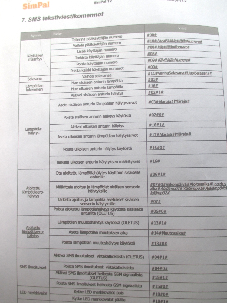 Simpal sms tekstiviestikomennot:
